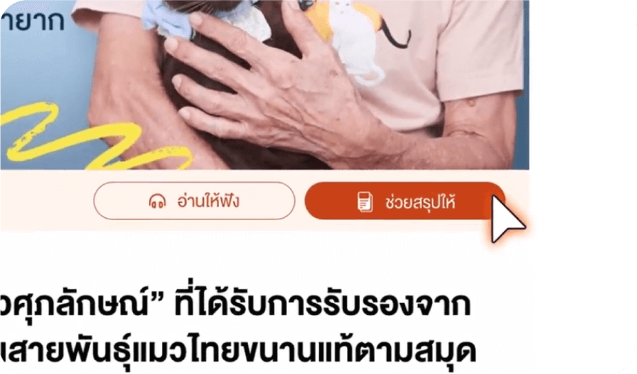 AI เข้ามาวิเคราะห์บทความหรือข่าว ก่อนจะดึงประเด็นสำคัญออกมาเรียบเรียงเป็นข้อๆ ความยาวประมาณ 3 – 5 พารากราฟ ประหยัดเวลาในการอ่านเนื้อหาแบบยาว ๆ โดยยังคงมีความชัดเจน และตรงประเด็น